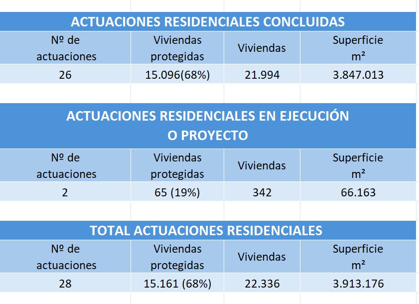 En estos 40 años, Sogepsa ha concluido un total de 47 actuaciones (26 residenciales y 21 industriales), ha regenerado o transformado completamente más de 8 millones de metros cuadrados de suelo, con capacidad para casi 25.000 viviendas, de las cuales 15.000 son protegidas y, al menos, 947 empresas.